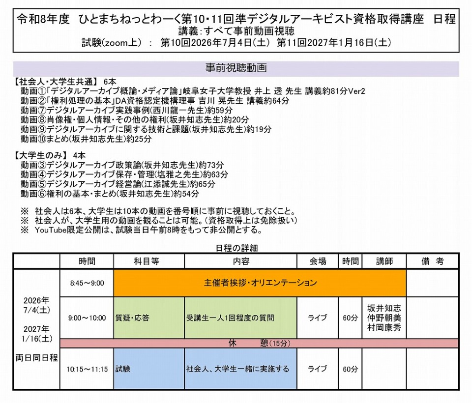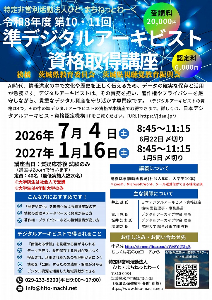 スタートページの右下に「デジタルアーキビスト資格認定機構」へのリンクがありますので、是非アクセスしてみてください。